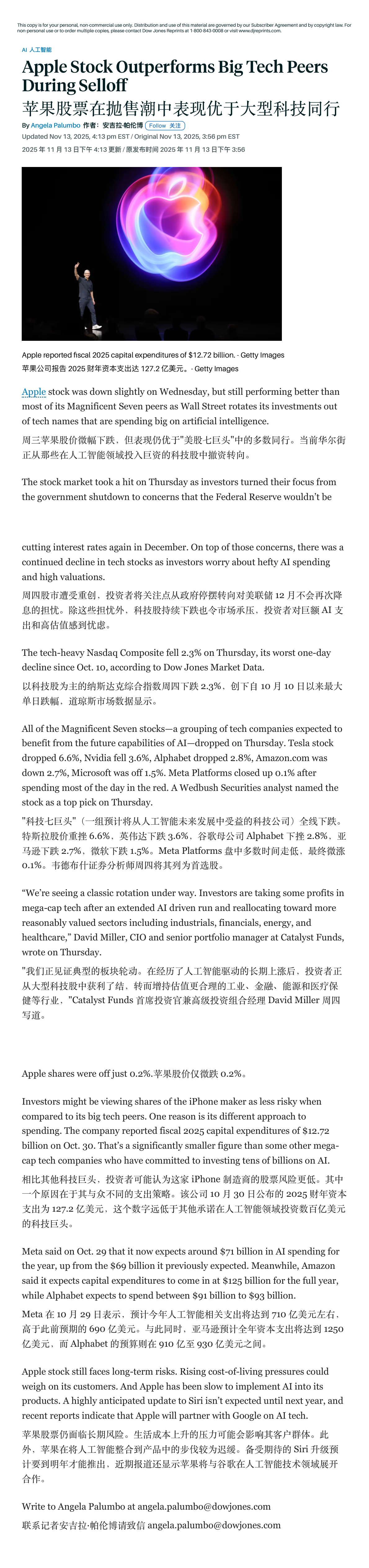 苹果股票在科技股抛售潮中表现优于大型科技同行. - 巴伦周刊